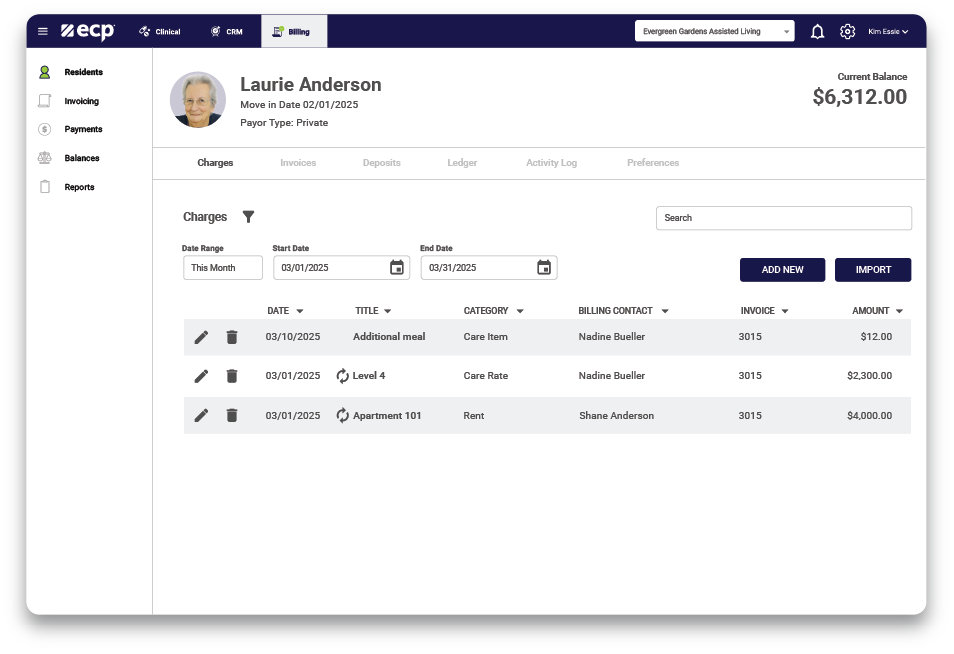 ECP offers a comprehensive, all-in-one software platform tailored to the needs of senior living communities, streamlining care and operations. Our Billing solution automates invoicing, tracks payments, and improves financial transparency, helping communities efficiently manage revenue. With ECP, senior living communities can enhance care, improve efficiency, and drive financial growth.
