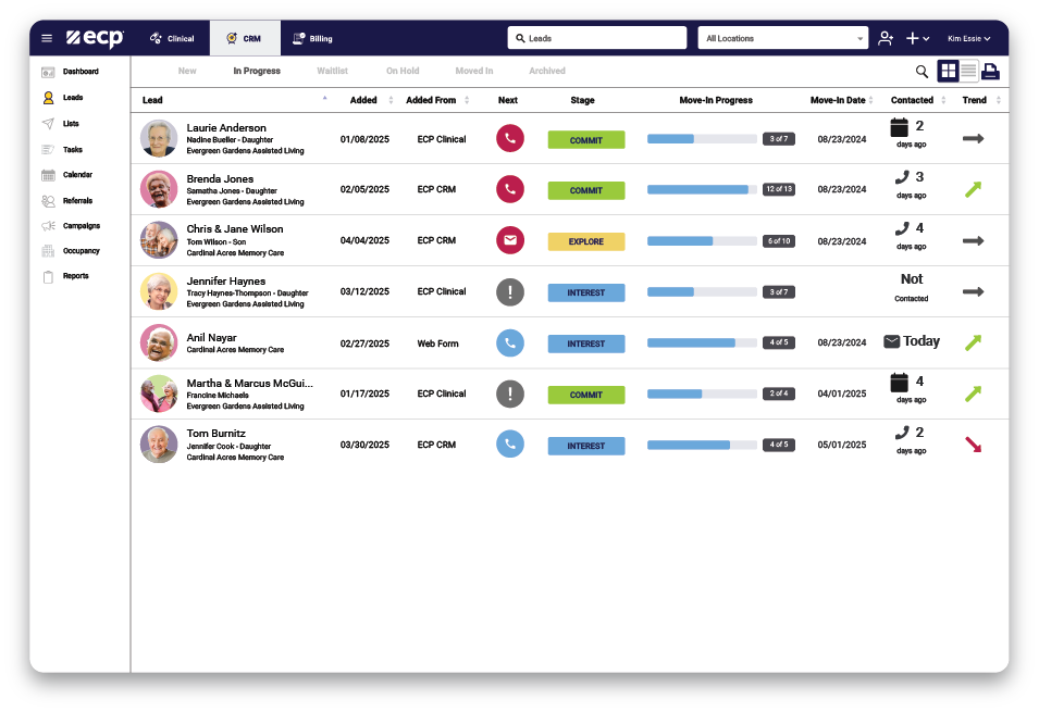 ECP is the preferred platform for over 8,000 senior living communities across all 50 states. Purpose-built for the unique demands of assisted living and memory care, ECP’s all-in-one platform includes eMAR, EHR, CRM, Move-Ins, Billing, and Business Intelligence to help operators streamline workflows, reduce risk, and capture every dollar earned.